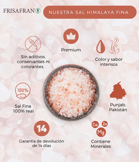 Découvrez l'authentique sel rose de l'Himalaya : des cristaux roses au goût pur et à l'histoire millénaire. Sa saveur douce et équilibrée rehausse tous types de plats sans les masquer, idéal pour les rôtis, les viandes, les légumes ou comme assaisonnement.
