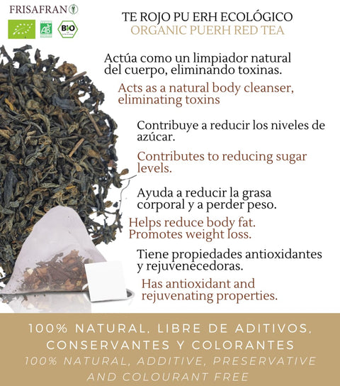 Découvrez la puissance du thé rouge Pu Erh dans nos pyramides écologiques. Cultivé selon des méthodes durables et fermenté naturellement, ce thé relaxant vous offre une infusion au goût terreux et profond , idéale pour celles qui cherchent à prendre soin de leur silhouette naturellement. Ses puissants antioxydants et sa capacité à accélérer le métabolisme en font le complément parfait à une alimentation équilibrée et à un mode de vie actif. Savourez chaque gorgée et ressentez la différence que le thé Pu Erh peut apporter à votre bien-être.