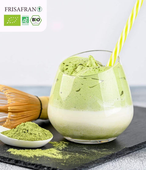Disfruta del auténtico sabor con nuestro matcha latte en polvo,  un producto ecológico y 100% natural de Frisafran. Con un color verde vibrante y textura cremosa,  es perfecto para preparar tu latte caliente o frío en minutos, solo con leche vegetal o agua.